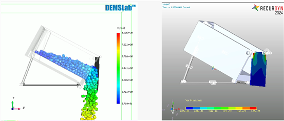 基于DEM-MBD的單向及雙向耦合接口,可以實現(xiàn)顆粒-設(shè)備之間復雜的動力學計算以及柔性設(shè)備的變形計算。