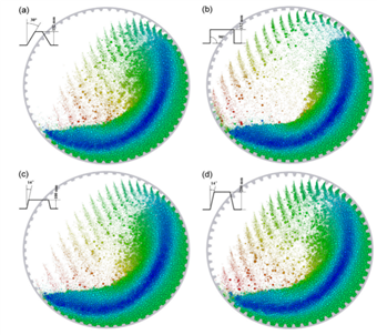 圖 3-10 不同提升條形狀下SAG磨機內(nèi)顆粒運動狀態(tài)