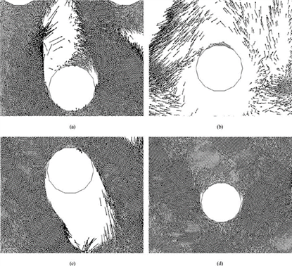 (c)被向下流動顆粒包圍的管道;(d)被準靜態(tài)顆粒包圍的管道。