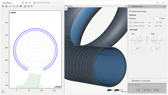? 葉輪子午面設(shè)計(jì)及固體結(jié)構(gòu)加厚設(shè)計(jì):CFturbo葉輪子午面流道設(shè)計(jì)提供貝塞爾曲線、直線+圓弧、直線、樣條曲線、導(dǎo)入外部曲線等方式來(lái)控制子午流道的形狀,并提供過(guò)流面面積曲線、靜力矩曲線、子午面速度云圖分布等信息指導(dǎo)子午面形狀設(shè)計(jì)。支持對(duì)子午面二次回流和葉輪結(jié)構(gòu)固體加厚設(shè)計(jì)功能。